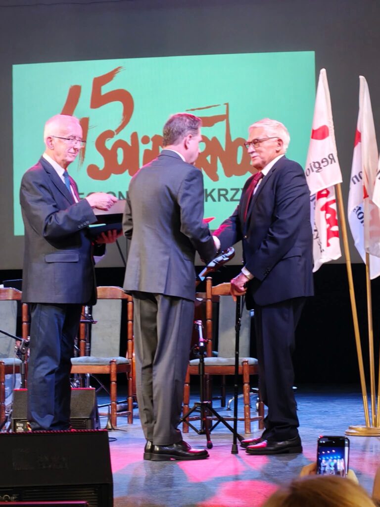 Przewodniczący Komisji Krajowej – Piotr Duda dokonał uroczystego wręczenia odznaczeń – Zasłużony dla NSZZ „Solidarność” – dla prof. Stanisława Bienia i Waldemara Ożóga. Artur Jopek wygłosił laudację upamiętniającą zalety i osiągnięcia wyróżnionych osób przez Krajowy Zjazd Delegatów NSZZ „Solidarność”.